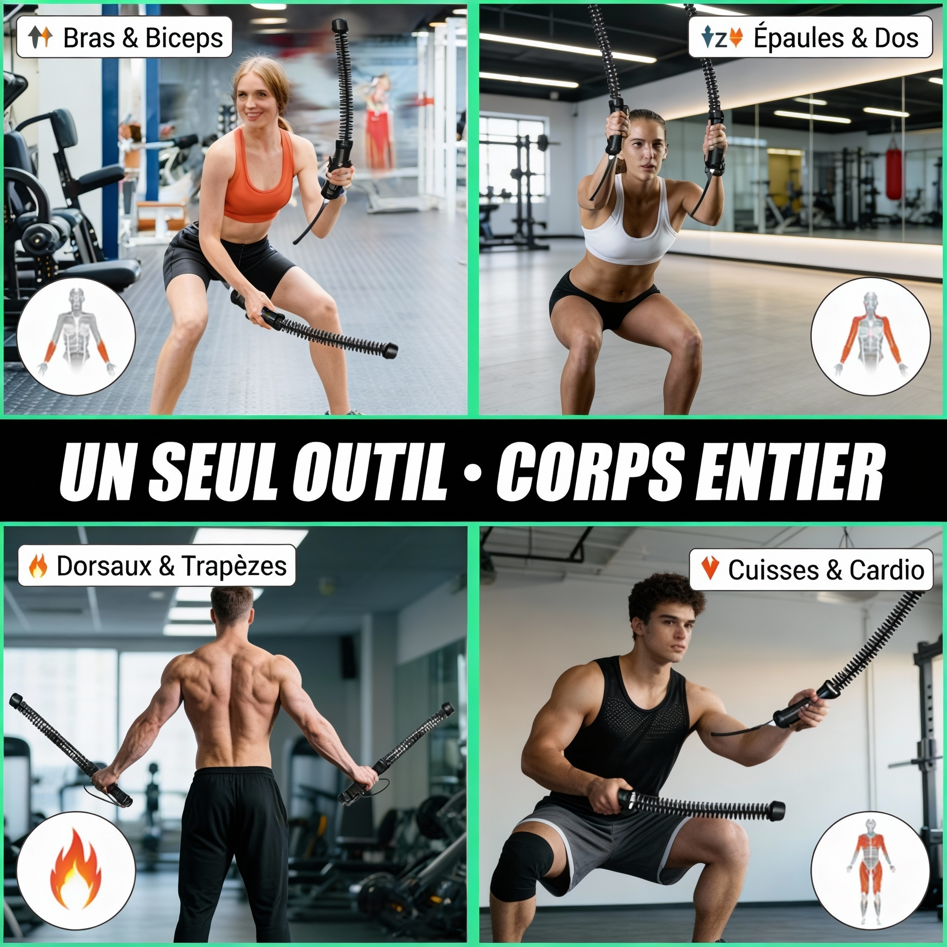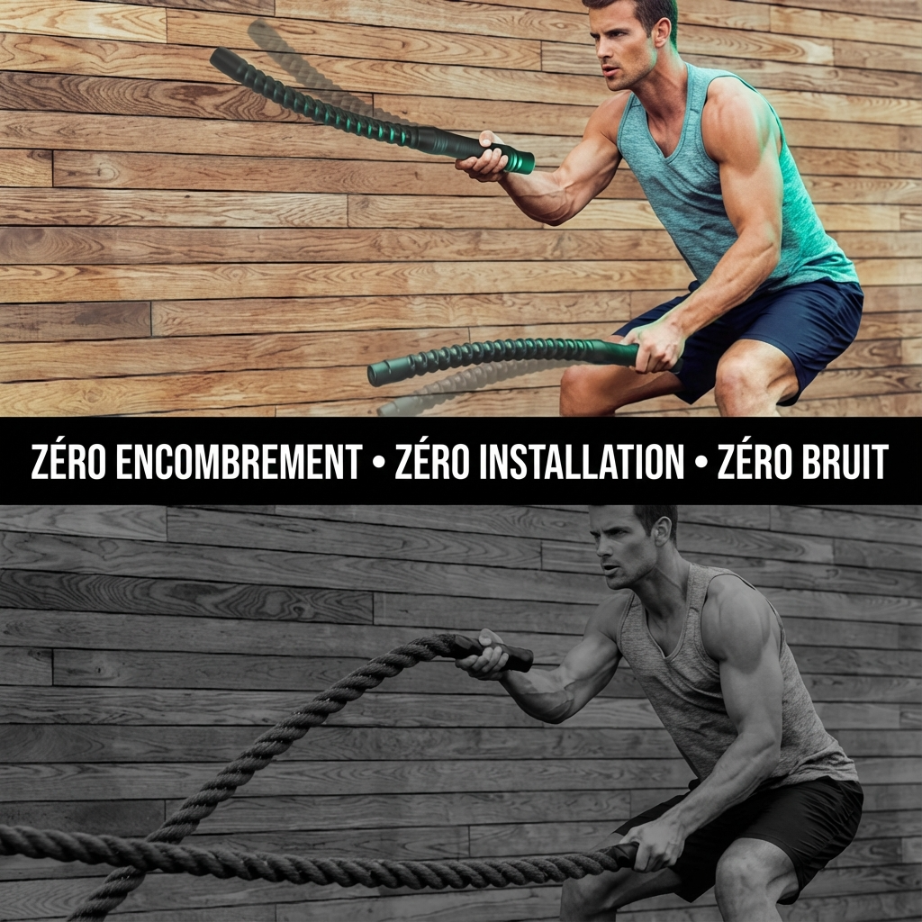 Je fais du CrossFit et je cherchais un truc pour la maison. L'inertie du ressort est géniale, ça force à gainer tout le corps pour stabiliser le mouvement. C'est bien plus technique que de simples haltères. Sophie R.